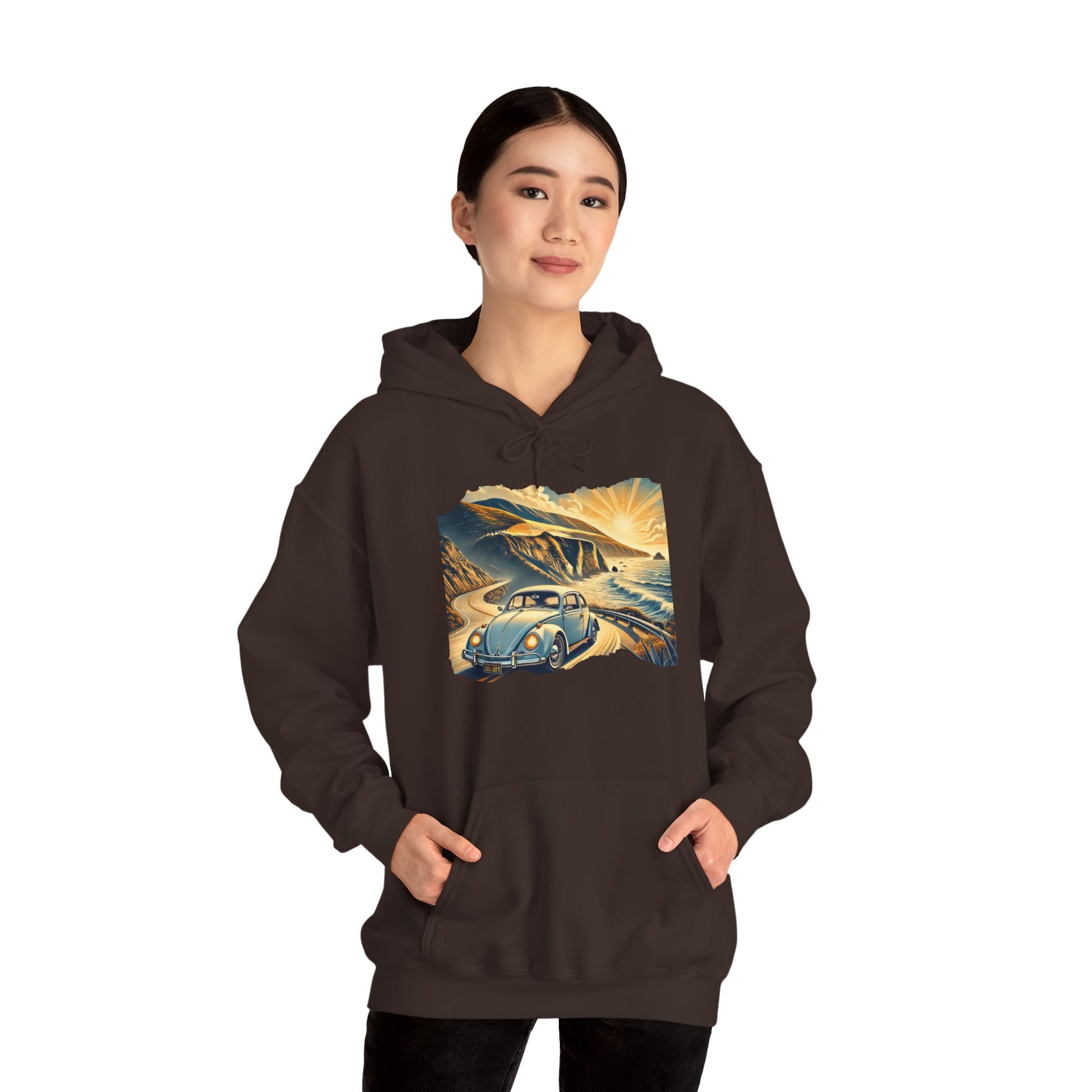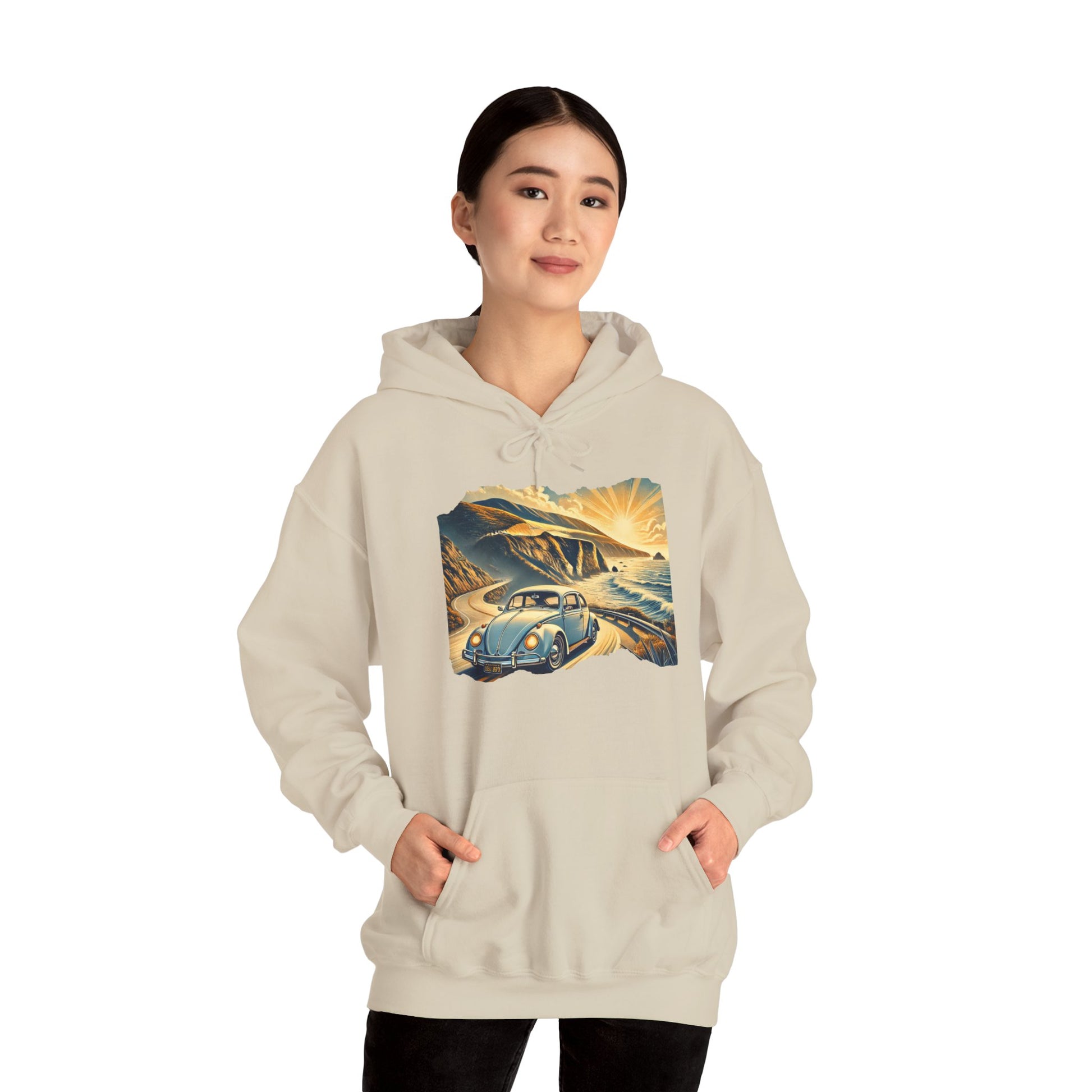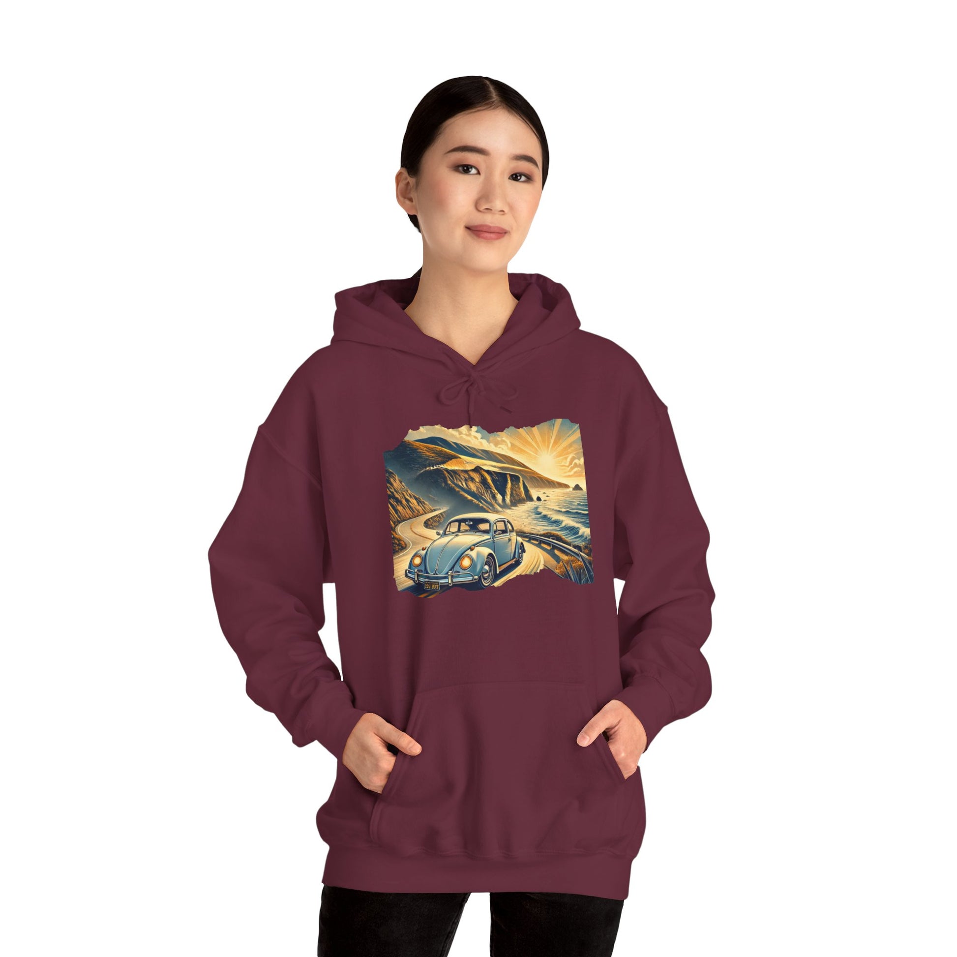 Coastal Cruise Vintage VW Hoodie, Retro California Road Trip Style, Vintage Car Adventure Hooded Sweatshirt | Cozy Unisex Hoodie | Retro Travel Gift | Road Trip Apparel | Ideal for Holidays and Celebrations