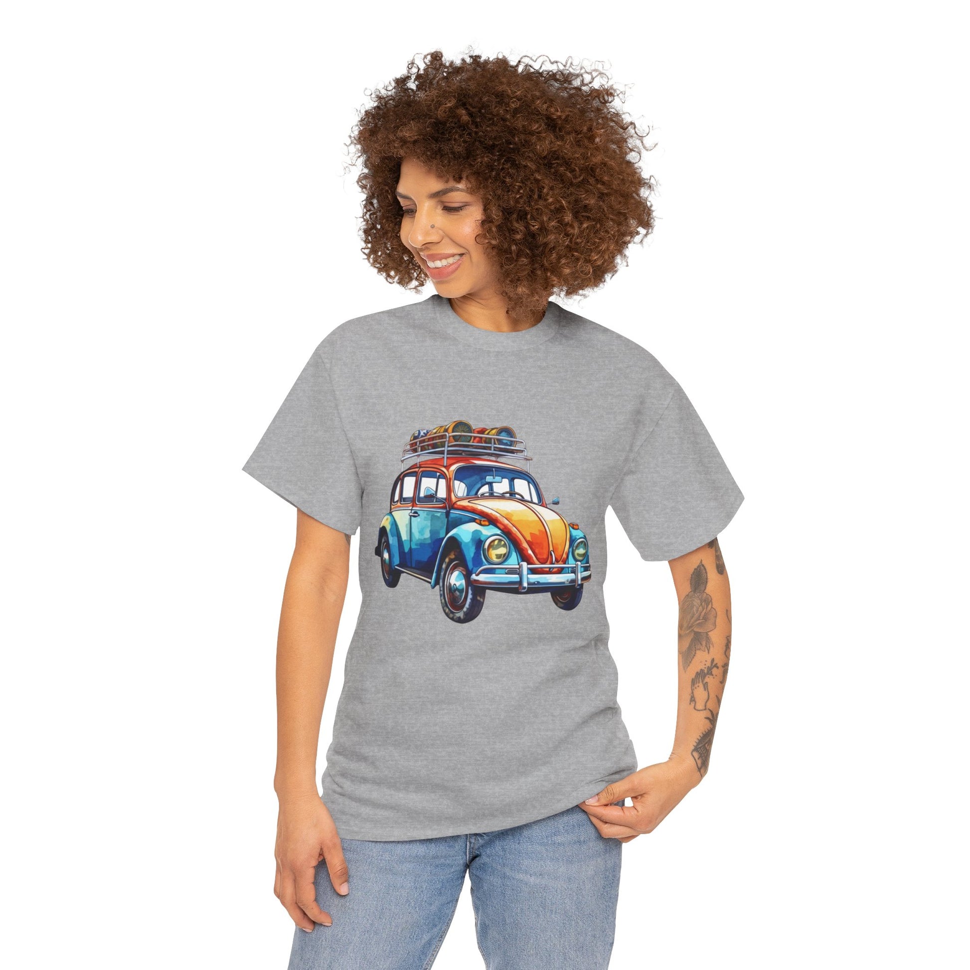 Hit the open road in style with the Road Trip Ready Tee, featuring a hand-illustrated vintage VW Beetle packed and ready for adventure. Bursting with color and retro charm, this design captures everything that makes travel timeless: freedom, spontaneity, and stories told between miles.