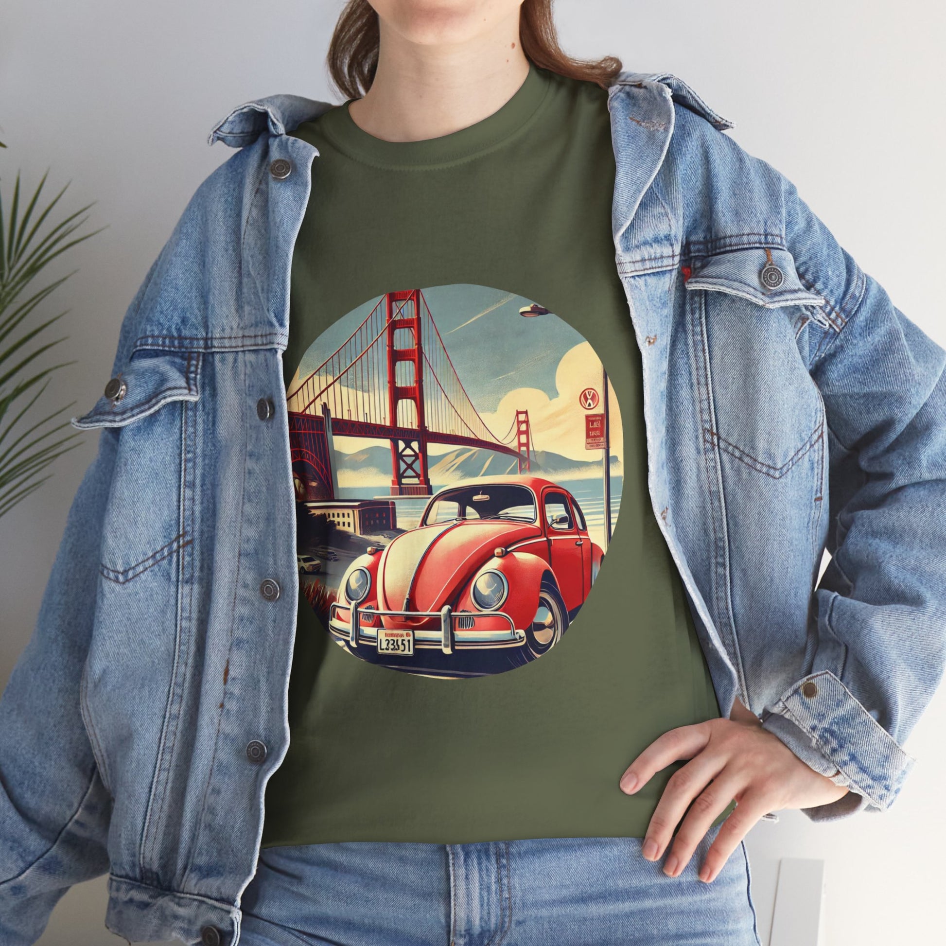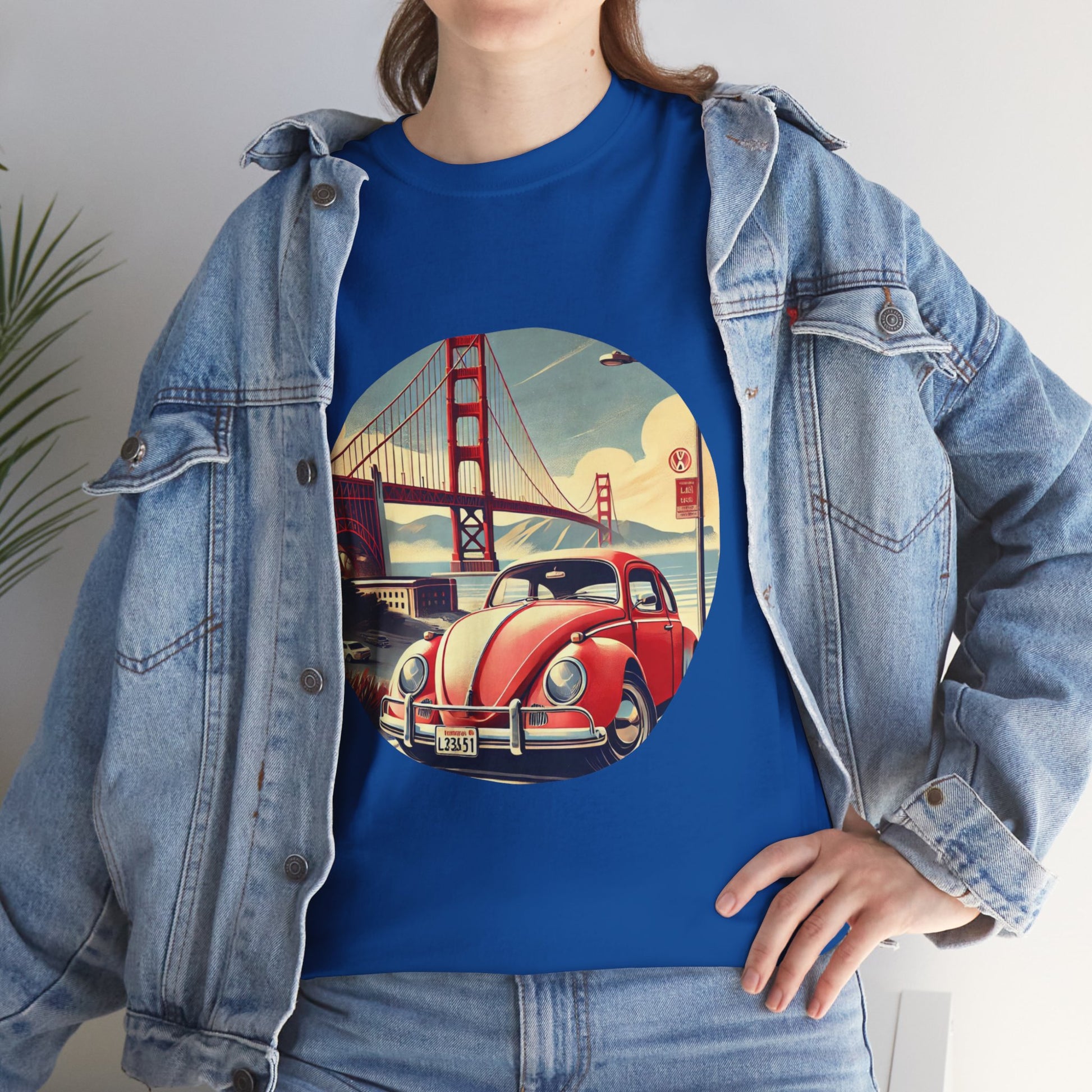 Golden Gate Cruiser VW T-Shirt, Retro San Francisco Vintage Car Design, Retro Car Vibes Unisex Heavy Cotton Tee, Graphic Tee, Vintage T-Shirt, Casual Wear, Gift for Car Lovers