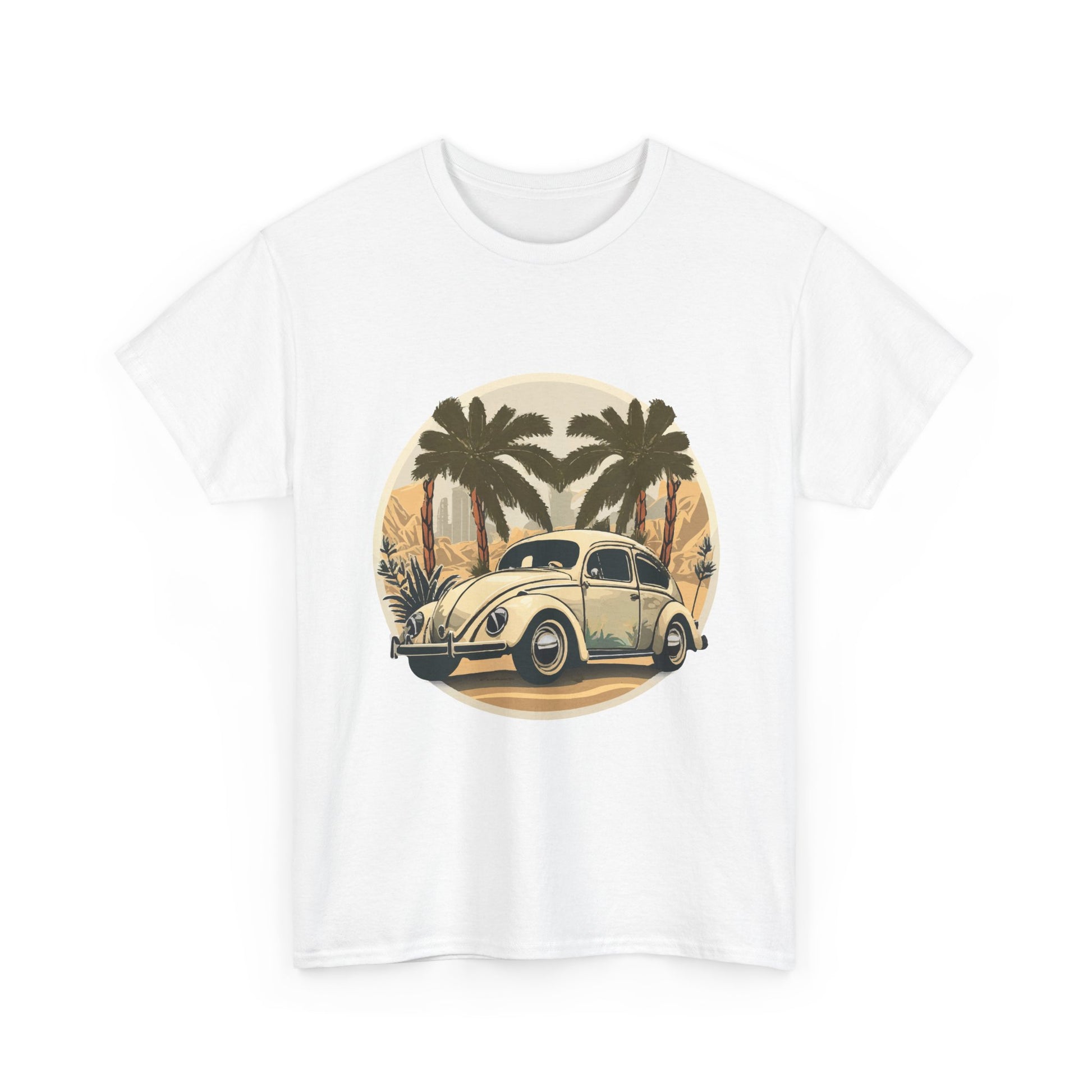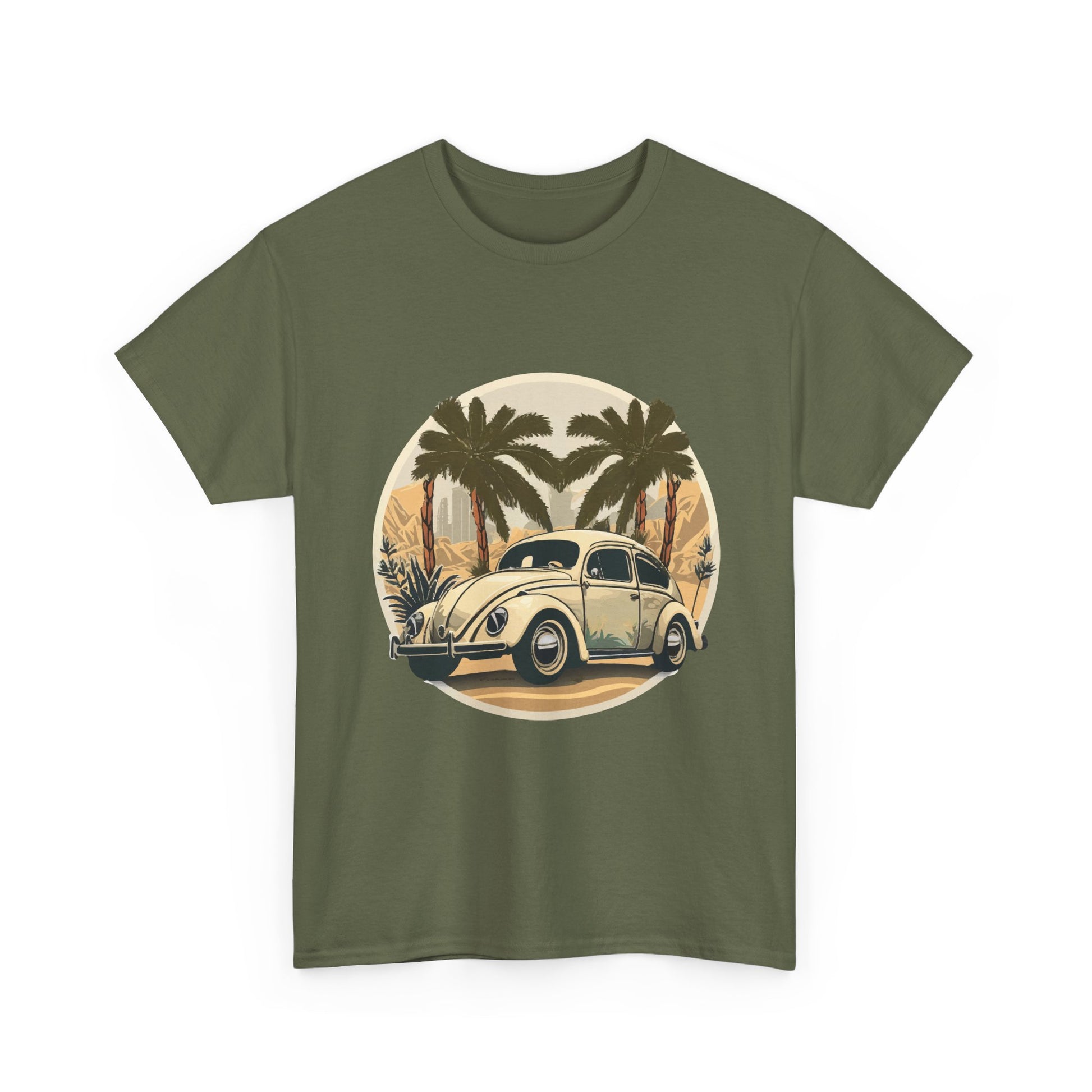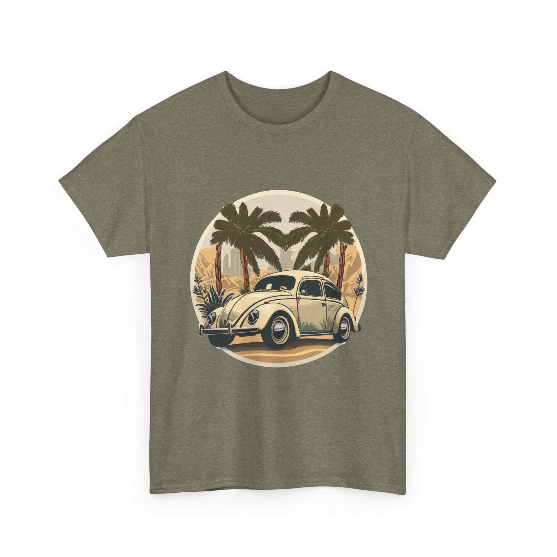 “Desert Palms Drive” Vintage VW T-shirt, Retro California Cruiser Design, Retro Car Art, Unisex Heavy Cotton Tee