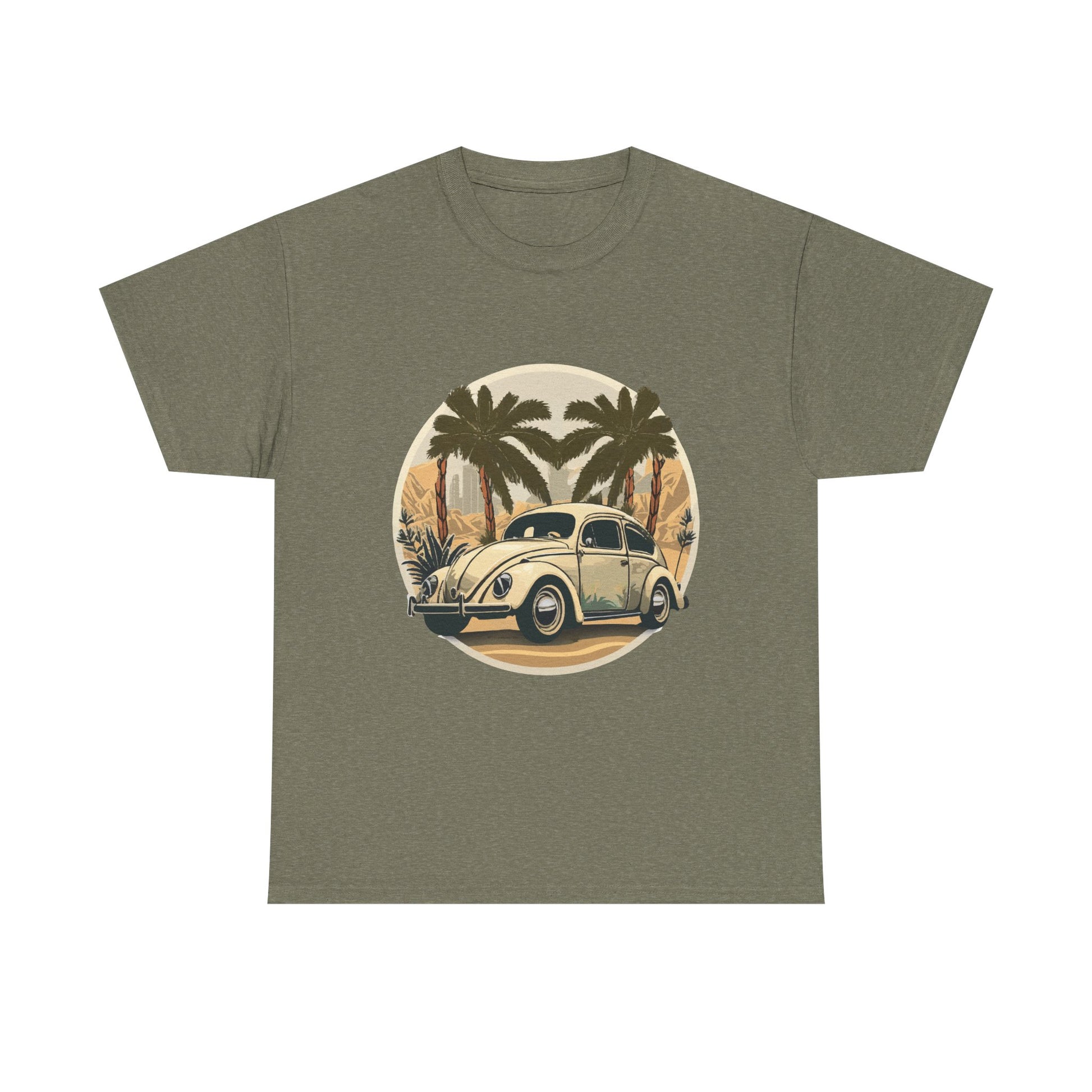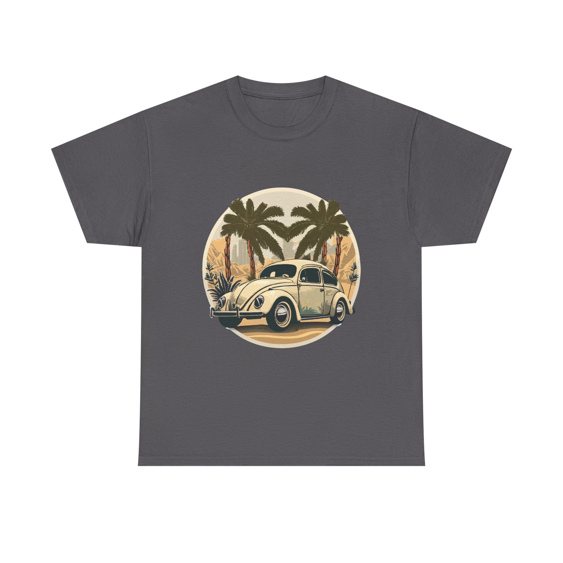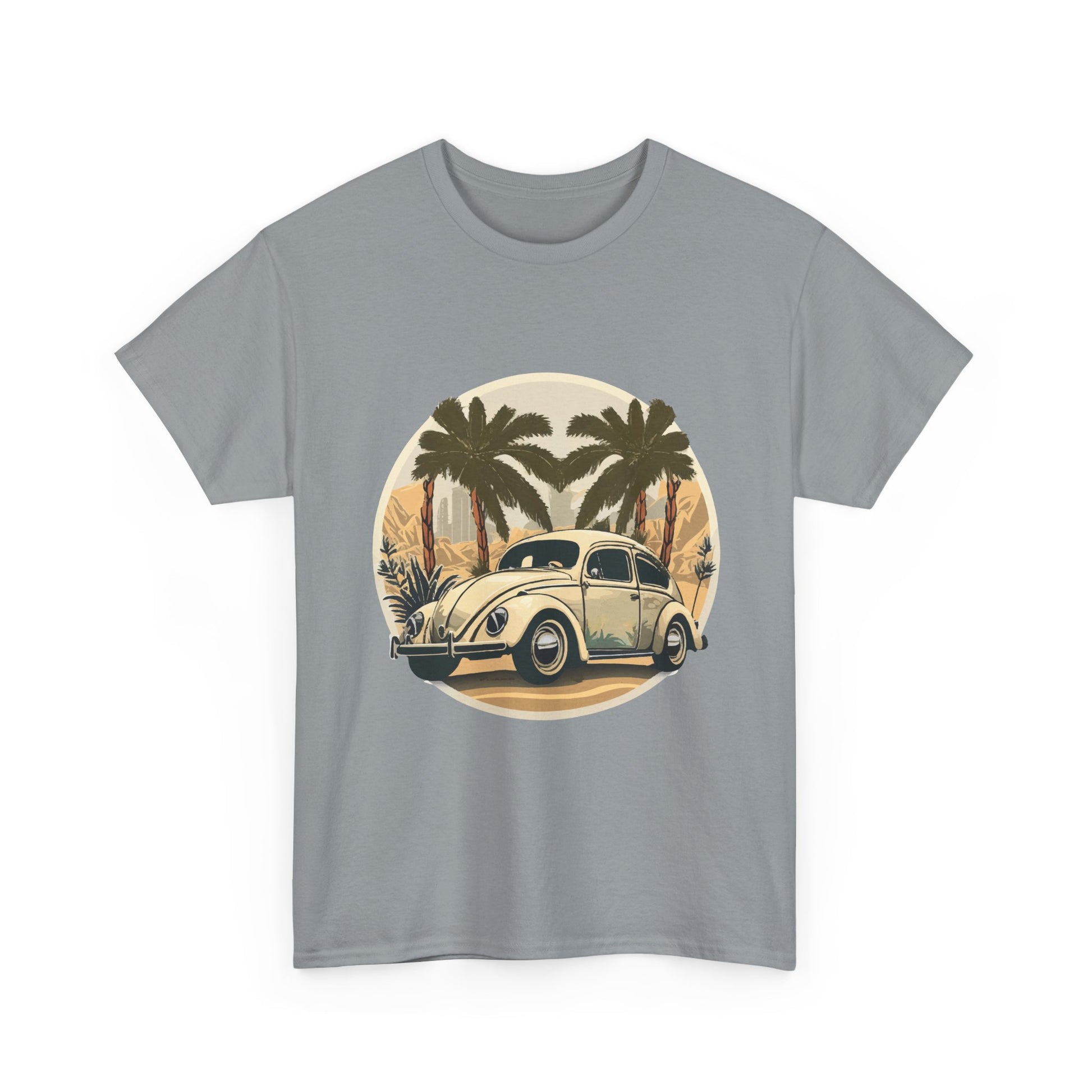 “Desert Palms Drive” Vintage VW T-shirt, Retro California Cruiser Design, Retro Car Art, Unisex Heavy Cotton Tee